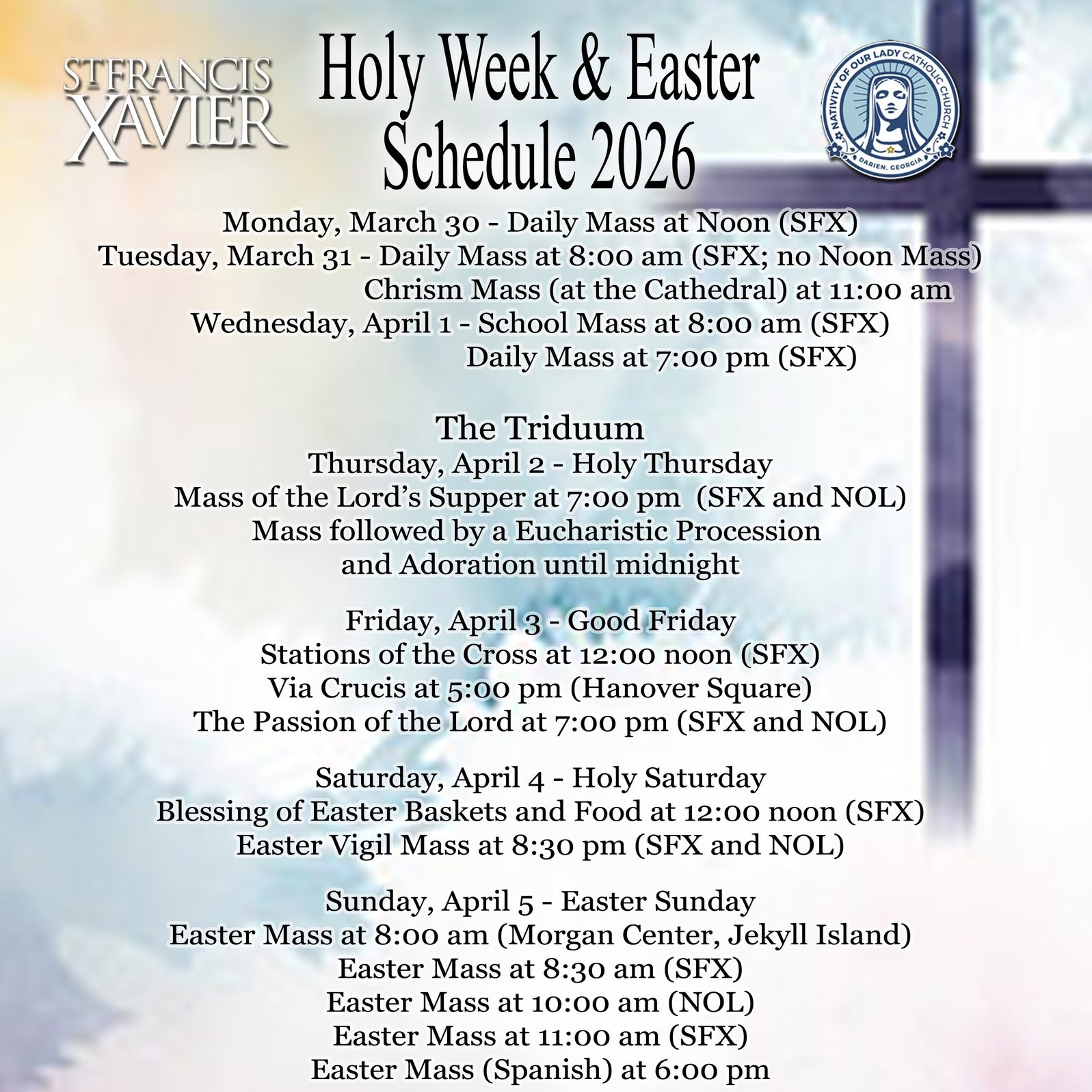 Wednesday, April 1 – School Mass at 8:00 am (SFX)